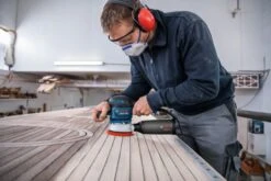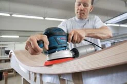 Exzenterschleifer GEX 40-150. Der GEX 40-150 Professional ist Boschs kabelgebundener Exzenterschleifer aus der 150-mm-Kategorie für starke Leistung und professionelle Schleifergebnisse. Sein Gehäuse mit entkoppelter Schleifeinheit sorgt für konstanten Anpressdruck und erstklassige Oberflächengüte. Seine einzigartige Vibrationsdämpfung gewährleistet sehr geringe Vibrationen und ermöglicht unterbrechungsfreies Arbeiten. Der GEX 40-150 ist mit einem Multiloch-Schleifteller für Schleifblätter mit verschiedenen Lochrastern und für eine deutlich stärkere Staubabsaugung ausgestattet. Dieser Exzenterschleifer eignet sich zum Schleifen, Zwischenschleifen, Lackentfernen, Feinschleifen und Polieren von Oberflächen. Er ist auf Holz, Furnier, Lack, Füllstoffen sowie Mineral- und Acrylflächen einsetzbar. Das Gerät ist mit dem Bosch Click & Clean System kompatibel. Der GEX 40-150 verfügt zudem über eine Staubbox mit integriertem Bosch Microfilter-System, einen 150-mm-Schleifteller mit Klettverschluss zur Schleifblattbefestigung, Drehzahlvorwahl und Vibration Control. Im Lieferumfang enthalten: Karton, 1x Mehrlochschleifblatt C470, Best for Wood + Paint, 120 (separat erhältlich als 5er-Pack: 2 608 608 X85), Schleifteller (150 mm) (2 608 601 335), Microfilter Box (2 605 411 233), Zusatzhandgriff (2 602 026 177), Innensechskantschlüssel