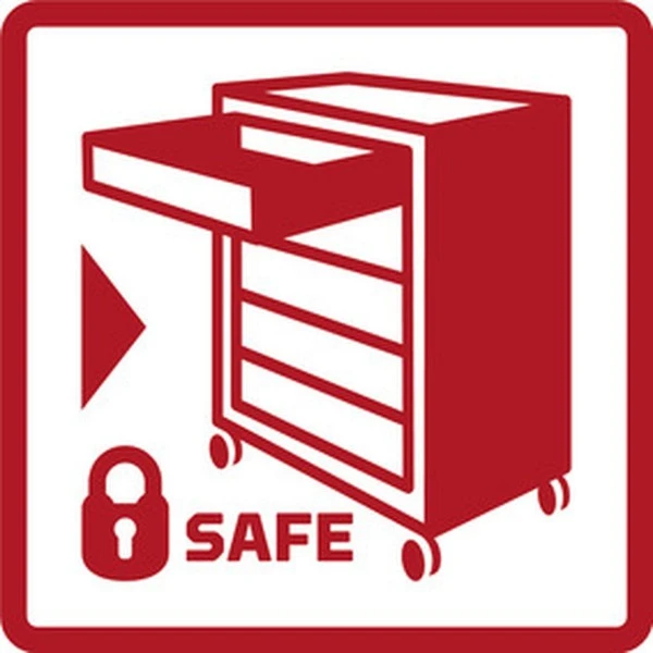 – Sicherheitsverriegelung je Schublade, Einhandbedienung