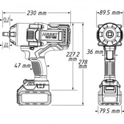 – Maße inklusive Akku: 278 x 230 x 89,5 mm