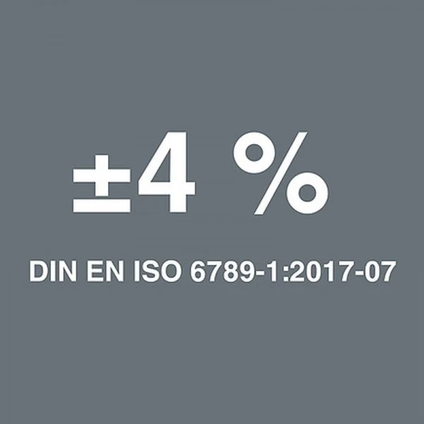 Präzision: Genauigkeit ±4 % vom eingestellten Wert, gemäß DIN EN ISO 6789-1:2017-07