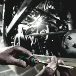 – 25-teilig; in oberflächenschonender, kompakter textiler Box mit hoher Robustheit. Geringes Volumen und Gewicht für vereinfachte Mobilität. 2 Joker Maul-Ringratschenschlüssel mit Haltefunktion für Schraube und Mutter, mit Endanschlag gegen Abrutschen nach unten, mit Doppelsechskant-Geometrie und extrem harten Spitzen in der Metallplatte gegen Abrutschen bei hohen Drehmomenten, mit kleinem Rückholwinkel von 30°; 1 Zyklop-Knarre 8000 A (1/4″) für schnelles, kraftvolles Arbeiten; 3 Zyklop-Nüsse 8790 HMA für den Hand- und Maschineneinsatz; 1 Zyklop-Adapter 8784 A1 für Bits; 6 TORX® HF Bits 867/4 mit Haltefunktion für TORX® Schrauben für sicheres Zuführen ohne Verlust der Schrauben; 1 einpoliger Phasentester 247; 2 Kraftform Serie 100 VDE Schlitz-Schraubendreher 160 i und 160 iS für sicheres Arbeiten bis zu 1000 Volt (160 iS mit reduziertem Klingendurchmesser mit integrierter Schutzisolation für das Erreichen und Betätigen von tiefliegenden Schraub- und Federelementen) mit Werkzeugfinder Take it easy: Farbkennzeichnung nach Profilen und Größenstempelung; 1 Kraftform Schraubmeißel 932 A (Schlitz) mit durchgehender Sechskantklinge und integrierter Schlagkappe für Schraub- und leichte Meißelarbeiten; 2 Steckschlüssel-Schraubendreher 395 HO mit Hohlschaft für das Festziehen oder Lösen von Muttern an langen Bolzen sowie von festsitzenden Schrauben.